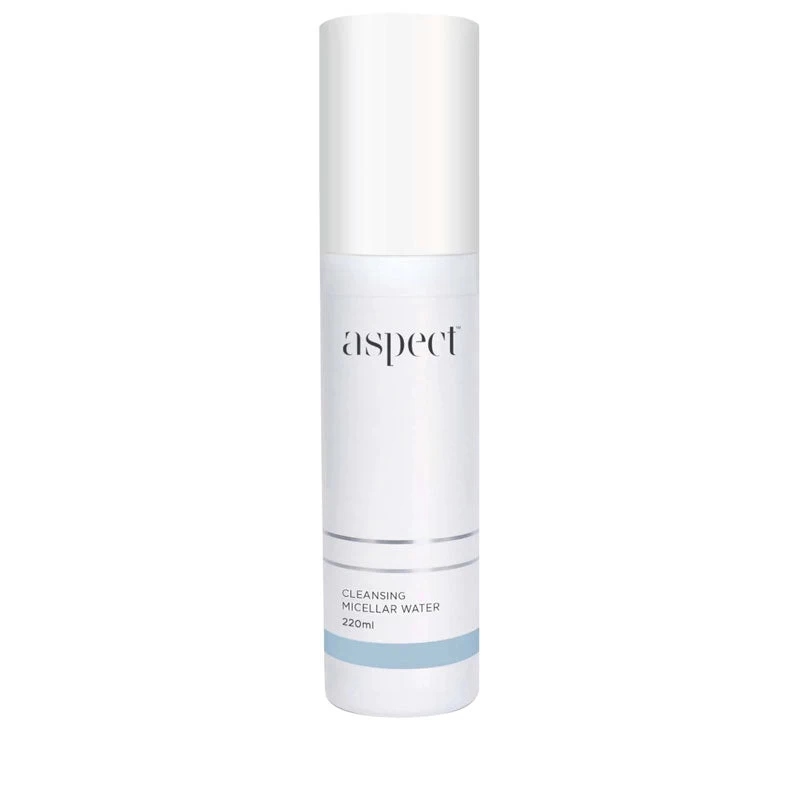 A one-step daily cleansing water ideal for removing makeup and cleaning the skin. Safe for use over the entire face and eye area, the Aspect Cleansing Micellar Water is gentle on eyelash extensions, is ideal for all skin types, particularly dry, sensitive skin types, and makes an ideal cleanser post gym workout. Soothing botanicals and a fragrance-free formulation leave the skin calm and comfortably clean.