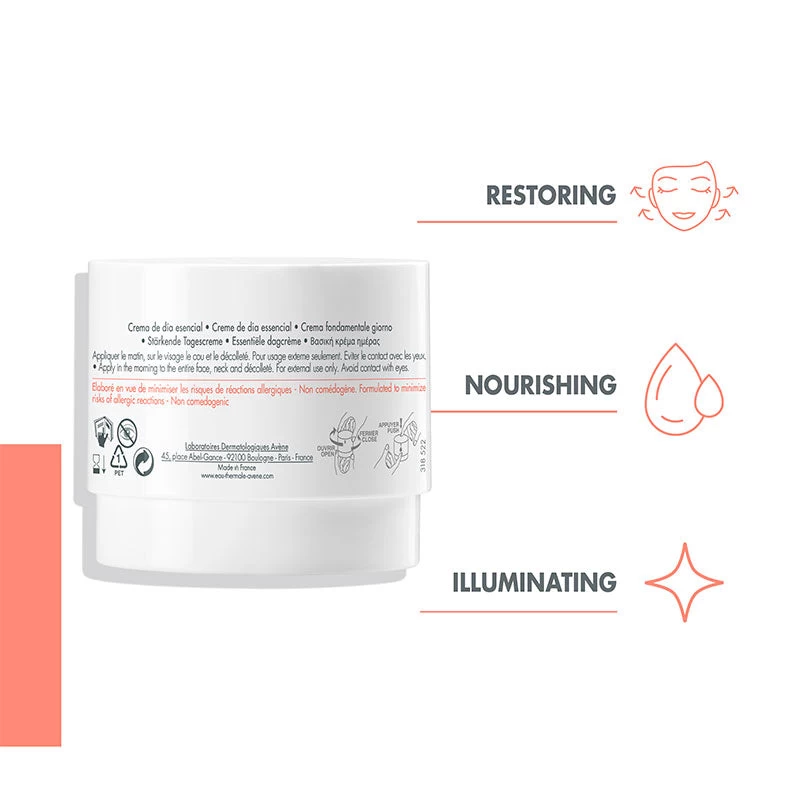 Gently smooth away fine lines, wrinkles and other signs of ageing with this creamy moisturiser. A soothing blend of Avène thermal spring water, shea butter, jojoba seed oil, sunflower seed oil and hyaluronic acid combine to intensely nourish and comfort sensitive skin. Illuminating pigments gently brighten the complexion without causing excess shine. With continued use, skin appears firmer, more evenly toned and visibly lifted.