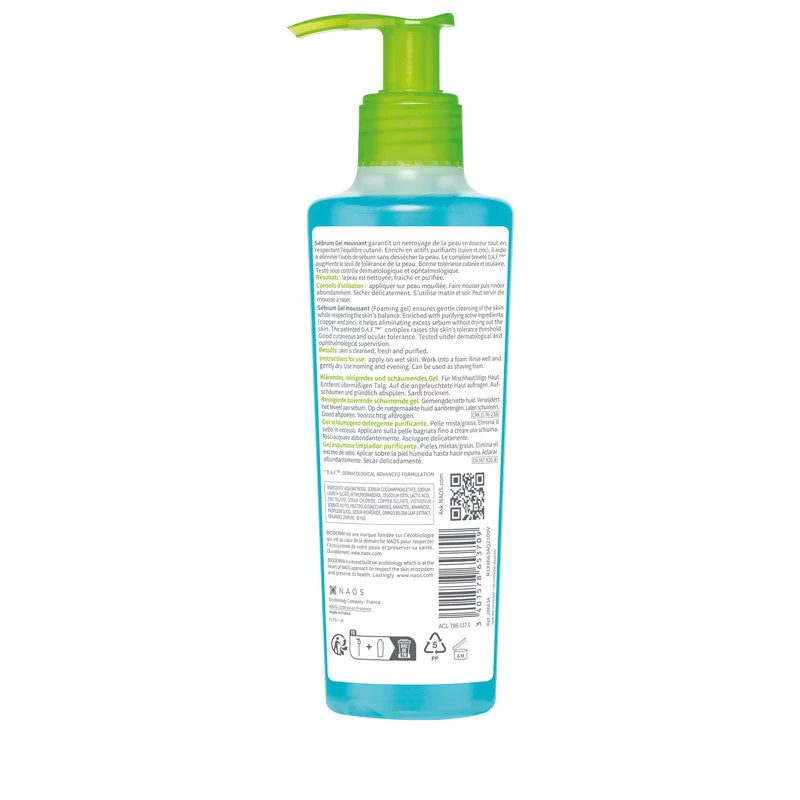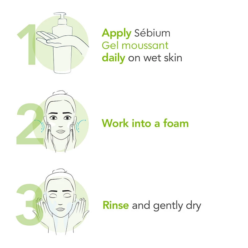 Sebium Foaming Gel gently cleanses and purifies the skin without drying it. The anti-bacterial properties of Zinc Sulphate and Copper Sulphate helps to reduce blemishes and regulates sebum, leaving skin feeling clean and comfortable.