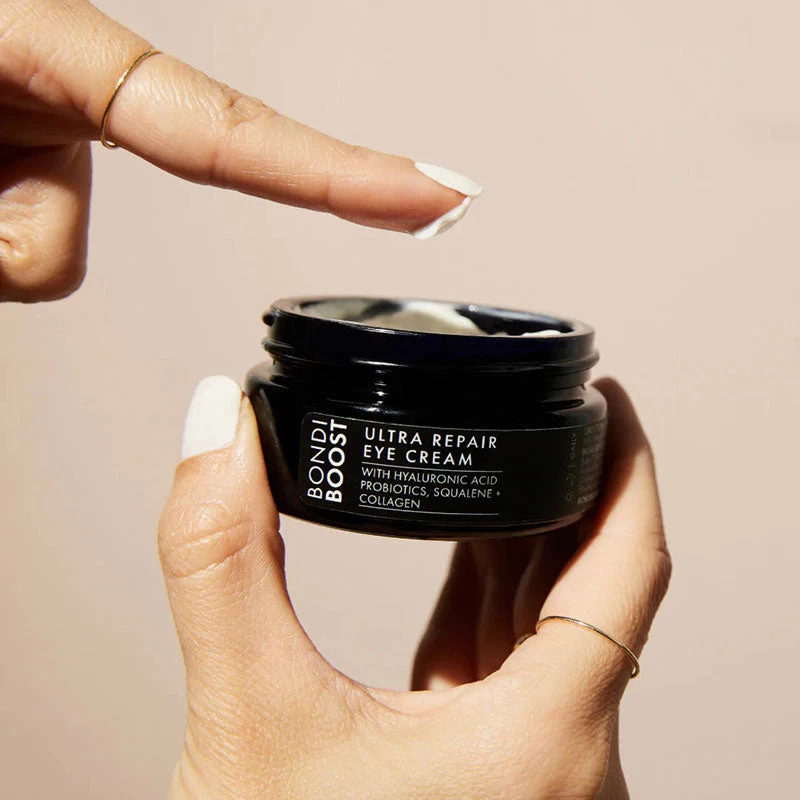BondiBoost Ultra Repair Eye Cream instantly brightens and reduces the appearance of fine lines, wrinkles and dark circles, giving you a youthful and radiant look. Formulated with powerful ingredients such as Hyaluronic Acid, this lightweight eye cream deeply hydrates and nourishes your skin, making it look more radiant and youthful.