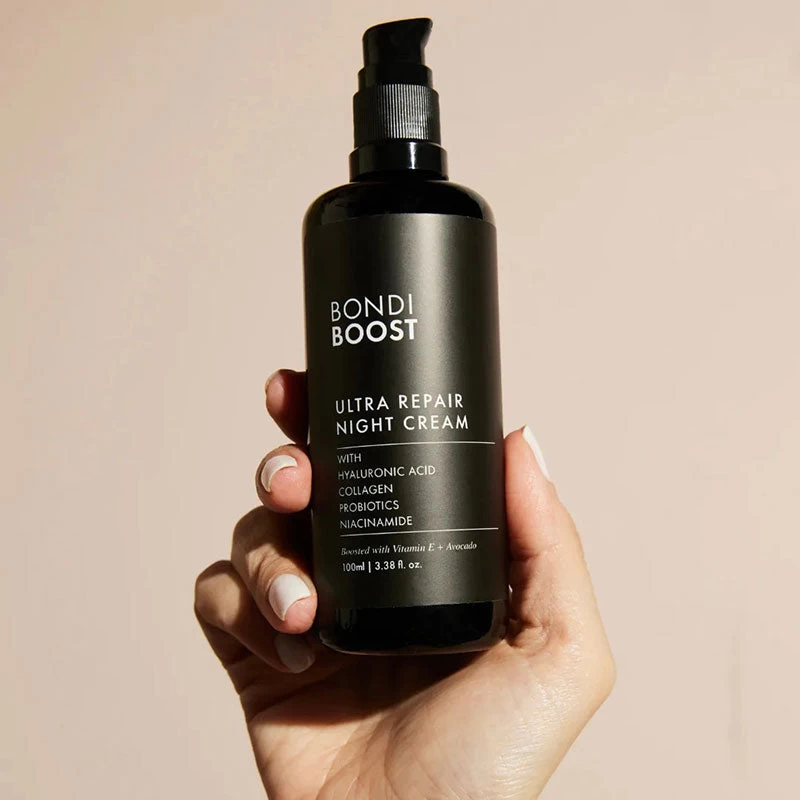 BondiBoost Ultra Repair Night Cream has a powerful formula packed with Niacinamide and Hyaluronic Acid to deliver intense hydration and brightening actives, making it the perfect night cream for tired skin. With regular use, you’ll notice a visible improvement in the appearance of your skin, giving you a more youthful and radiant complexion.