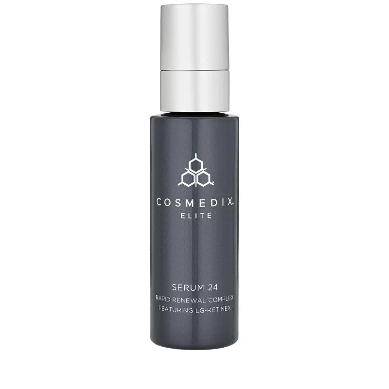 Stimulate & renew with CosMedix Elite Serum 24. This highly active, age-defying serum combines a unique blend of LG-Retinex, microencapsulated Retinol and Retinaldehyde to visibly reduce the look of medium to deep lines, including crow’s feet. Clinically proven to reduce the appearance of fine lines and wrinkles, this powerhouse formula contains 24% LG-Retinex, which is a proprietary glycosaminoglycan-enhanced encapsulation of retinol and retinaldehyde that delivers quick results without the negative effects commonly associated with some retinols such as dryness, tightness and irritation. Skin is left looking brighter, smoother and the appearance younger.