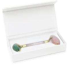 With a large Rose Quartz roller for facial areas and a smaller Jade Crystal roller end for the delicate eye area, this circulation boosting facial roller encourages cell rejuvenation for a more radiant complexion. The soothing rolling motion enhances natural lymphatic drainage to alleviate puffiness and skin inflammation making this the perfect addition to any skincare regime for all skin types.