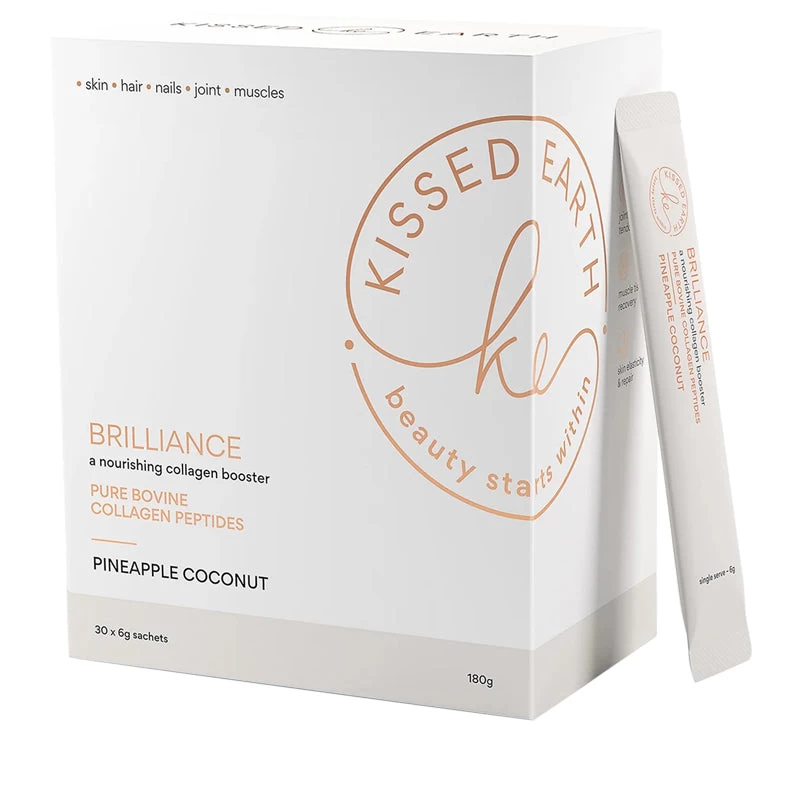 Enjoy a healthy glow from within with Kissed Earth Brilliance. The all-natural formula utilises collagen peptides (sourced from bovine) to help fight visible signs of ageing, improve bone & joint health, and promote gut healing. Easily digested and readily absorbed by the body, this superior formula also assists with hair, skin and nail health while enhancing overall wellbeing.