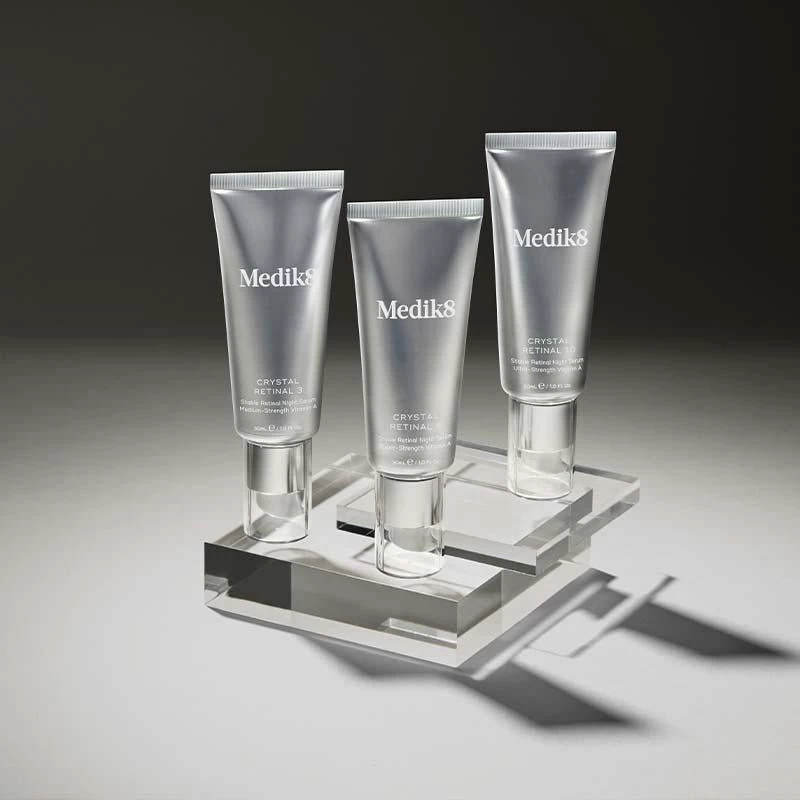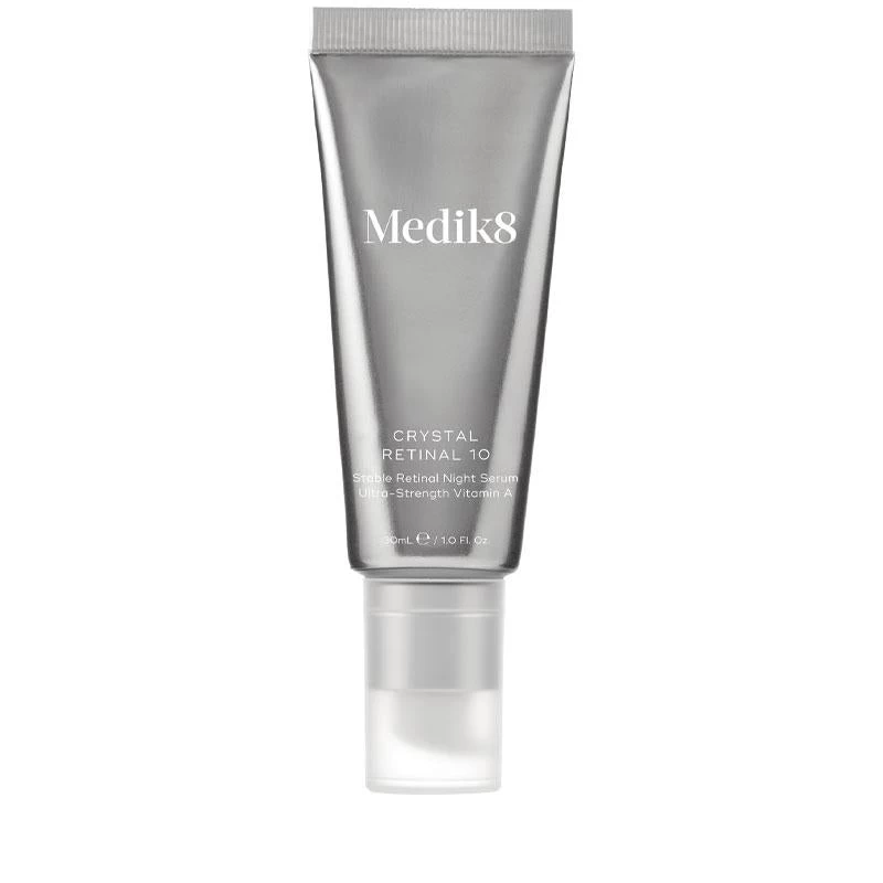 Rediscover youthful skin with Crystal Retinal™ 10, Medik8’s latest innovation in vitamin A. Formulated with 0.1% stabilised retinal, a powerful derivative of vitamin A with next-generation anti-ageing results. Unmatched in its age-defying power, retinal can deliver results comparable to clinical-grade vitamin A up to 11 times faster than classic forms of retinol. The ground-breaking overnight serum visibly minimises fine lines and wrinkles; firming and plumping the complexion to resurface skin texture and soften then face. Featuring hyaluronic acid and vitamin E, it hydrates skin at every level to deliver a supple, even-toned, more youthful-looking complexion. More than that, it actively helps reduce blemish-causing bacteria to keep skin clear and balanced. In just 4 weeks, skin is noticeably younger, smoother and undeniably radiant.