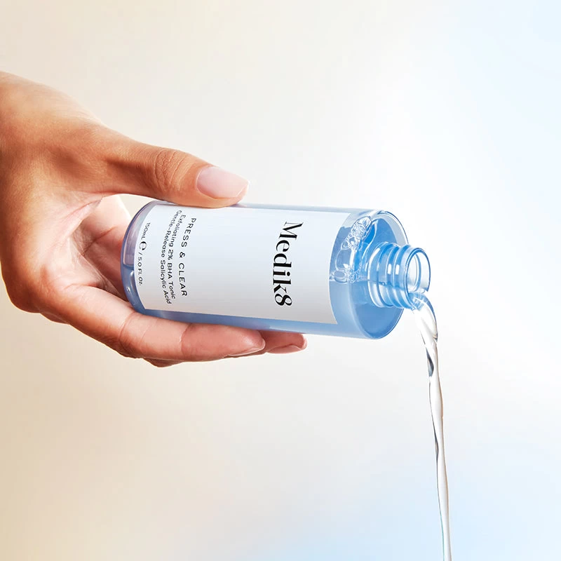 Ready to take your complexion to the next level? Medik8 Press & Clear is here to help. This powerful toner is formulated with 2% BHA to target blemishes and help prevent future breakouts. Decongestion, brightening and barrier-supporting ingredients like Alpha Arbutin and Australian Kakadu Plum work together to give you a clearer, more even-toned complexion. Blue Cornflower Extract and Aloe Vera help soothe and calm the skin, reducing the appearance of redness. Gentle enough for daily use, Medik8 Press & Clear will become your new go-to for blemish-free skin. Suitable for normal, oily and dry skin types.