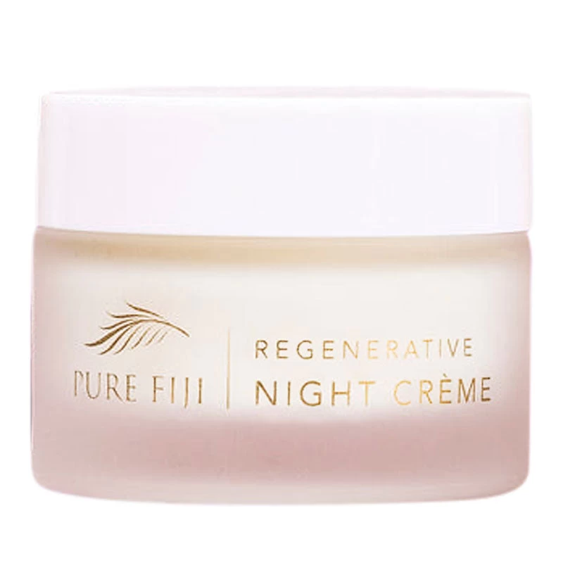Treat your skin with the Pure Fiji Regenerative Night Creme. This intensely moisturising regenerative night creme helps to retexturise skin and smooth the appearance of fine lines and wrinkles while you sleep. The dual peptide formula combines Inchi seed and Royal Epigen P5, a biologically-active peptide that accelerates skin regeneration and glow. Complemented with the advanced rejuvenating system of Plant collagen and Scutellaria, this potent formula helps to improve firmness & elasticity, leaving skin with a youthful, plump appearance. Suitable for all skin types.