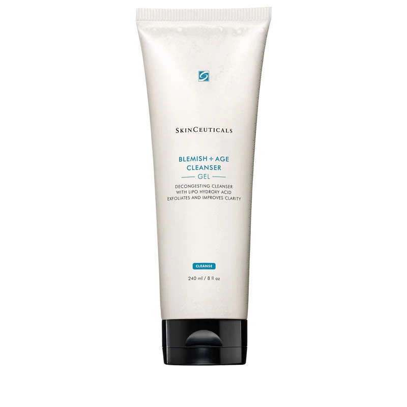 Designed for ageing skin prone to breakouts, SkinCeuticals Blemish and Age Cleanser Gel is a targeted exfoliating cleanser formulated with a 12% concentration combining lipo-hydroxy acid, glycolic acid, salicylic acid, glycerin, and sorbitol to remove excess oils and makeup, while decongesting pores and brightening skin. Soap, synthetic-fragrance, dye and alcohol-free. Suitable for oily, combination, and ageing skin types.