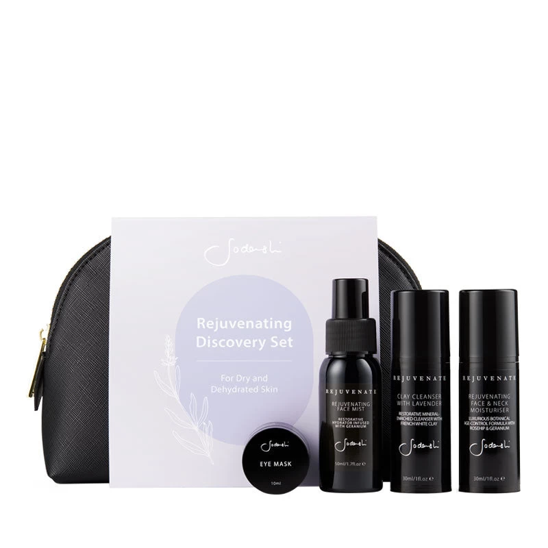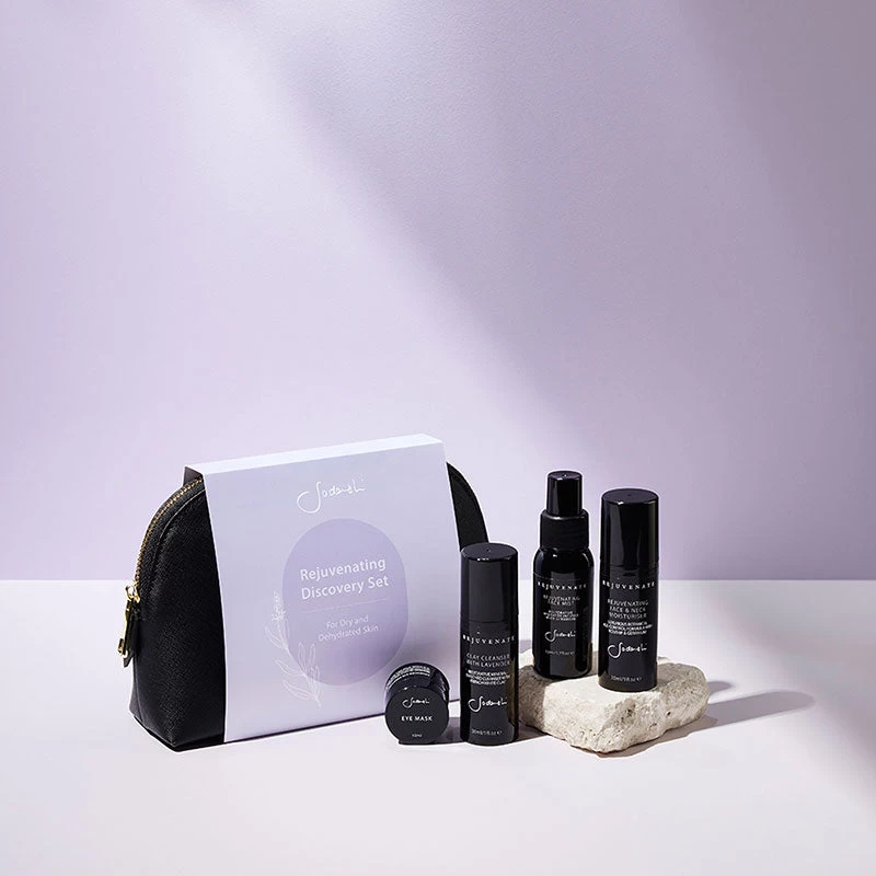 Wrap skin in deep penetrating moisture with the Sodashi Discovery Set, featuring products from the Rejuvenate collection. A botanical blend of Lavender, Gotu Kola, and Rosewood nourishes and protects the skin rendering it – soft, plump, and rejuvenated. Suitable for dry and dehydrated skin.