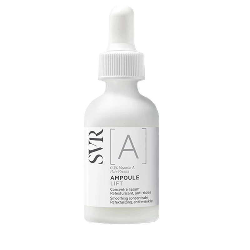 Smooth, repair and regenerate even sensitive skin with SVR’s potent anti-ageing retinol serum! Capturing the power of 0.3% retinol, this Vitamin A serum connects to the receptors on the skin cells, increasing cell turnover for radiant, clear skin. Another added benefit is the combination of Peptides and Grape Seed Oil to increase collagen production, enabling a higher tolerance of retinol while the anti-inflammatory oil restores and nourishes the skin with the omega fatty acids and Vitamin E. Ideal for beginners to retinol and seasoned veterans alike, SVR’s Ampoule A Lift can be used for all skin types, including sensitive skin.