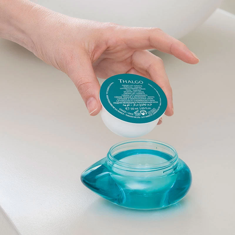 Developed to meet the demands of ageing skin in your 40’s, this advanced lifting and firming moisturiser refill contains Marine extracts together with Silicium to support the skin’s natural elasticity. Fine lines and wrinkles are expertly filled and appear more smooth as jawline facial contours are lifted to restore youthfulness. The affects of ageing are diminished as the divine melting texture nourishes and regenerates the skin. This eco-friendly pod fits perfectly into the Thalgo Silicium Lifting & Firming Cream vessel. Suitable for all skin types, especially those concerned with ageing.