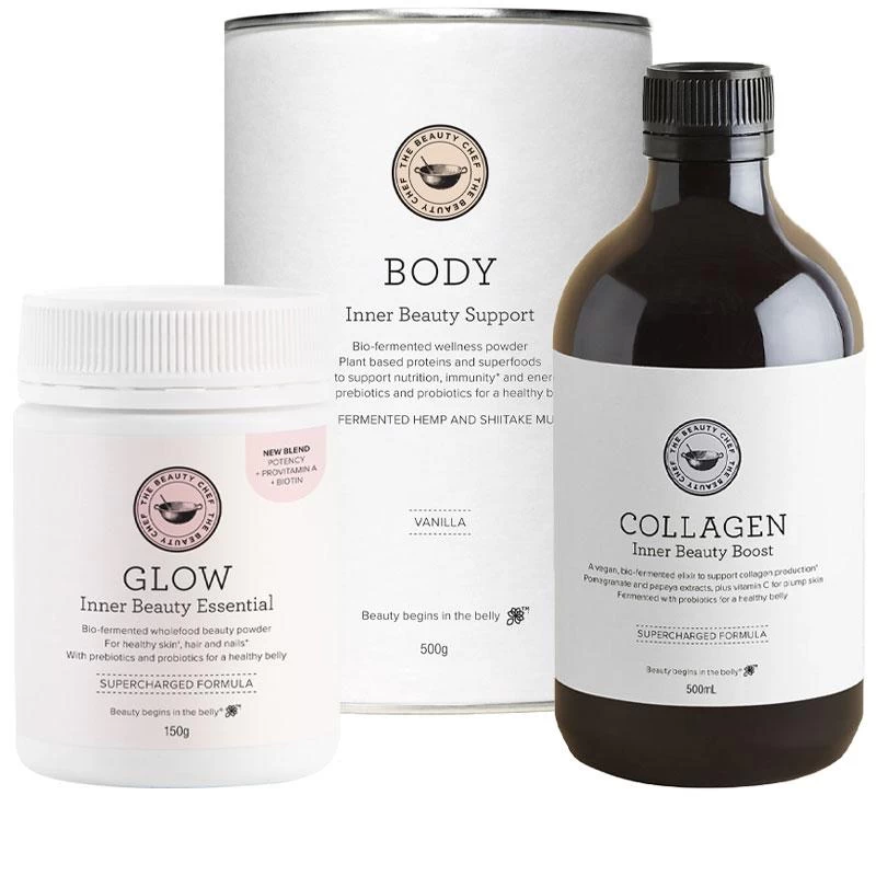 The Beauty Chef Glow + Collagen + Body Vanilla Trio includes: