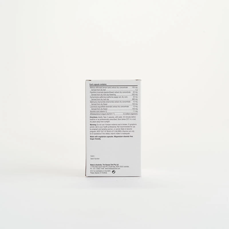 Help decrease feelings of restlessness and nervous energy, and help increase feelings of calm with this intensive herbal probiotic. This concoction of chamomile, lavender, lemon balm, California poppy and passionflower work synergistically help to induce sleep.