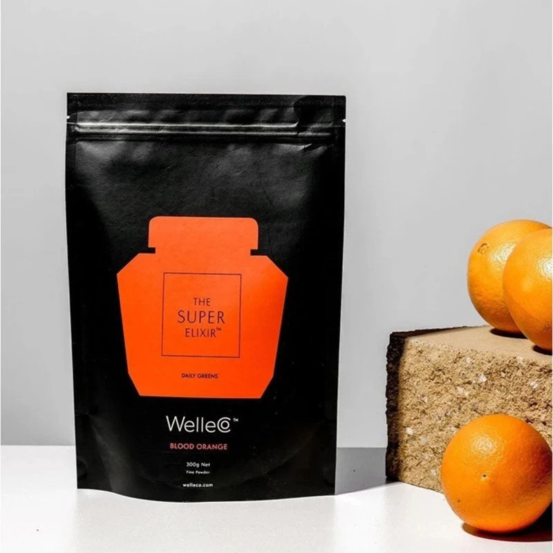 Orange is the new green. Introducing The Super Elixirâ„¢ Blood Orange, WelleCo’s newest, boldest flavour in the WelleCo collection. This nourishing green powder has the same beauty and wellness boosting benefits as WelleCo’s original Pineapple and Lime variation, but with a bold, uplifting Blood Orange flavour. This bold and zesty formula combines organic barley grass, orange, spinach, apple and goji berry with lemon, raspberry and acai for a truly delicious blend. Unsweetened with subtle undertones of natural greens, you’ll enjoy all the powerful benefits of The Super Elixirâ„¢ without a powerful taste.