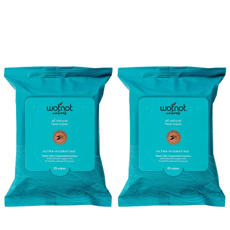 Thoroughly cleanse, soothe and hydrate dry, ageing skin with Wotnot’s 100% natural, biodegradable and compostable facial wipes. Enriched with certified organic camellia and sweet apricot oil, these ultra-hydrating facial wipes thoroughly remove all traces of makeup without irritating or stripping the skin of its natural oils.